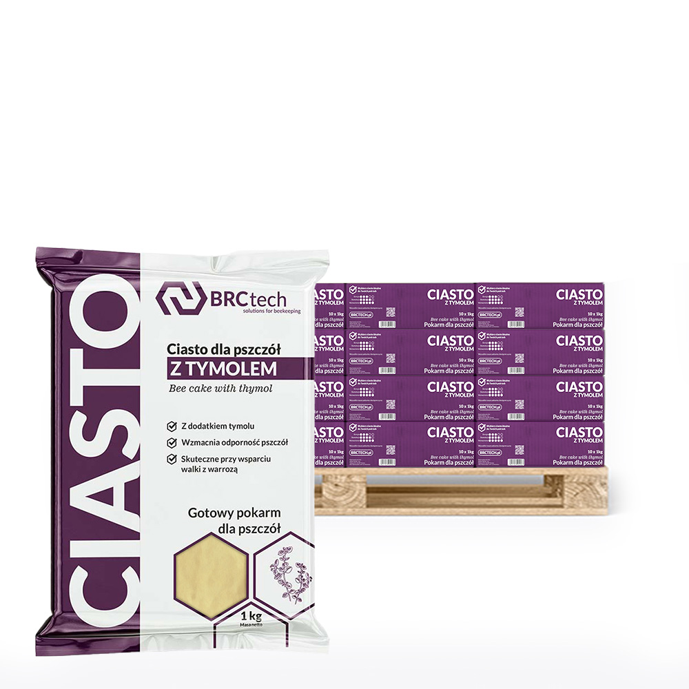 Ciasto cukrowe z tymolem BRCtech to gotowy pokarm dla pszczół, który dostarcza im niezbędnej energii w okresach bezpożytkowych oraz wspomaga w utrzymaniu zdrowia i odporności na choroby. Zawartość tymolu pomaga ograniczyć rozwój roztoczy Varroa destructor oraz innych patogenów, dzięki czemu pasieka staje się silniejsza i bardziej produktywna.