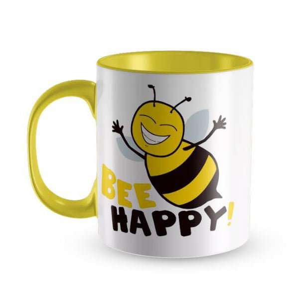 Kubek z nadrukiem żółty – bee happy pszczoła