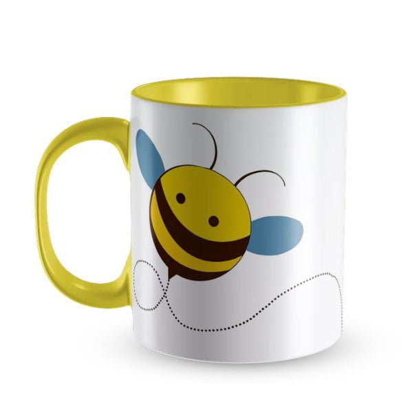Kubek z nadrukiem żółty – latająca animowana pszczoła