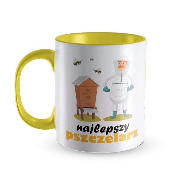 Kubek z nadrukiem żółty – najlepszy pszczelarz