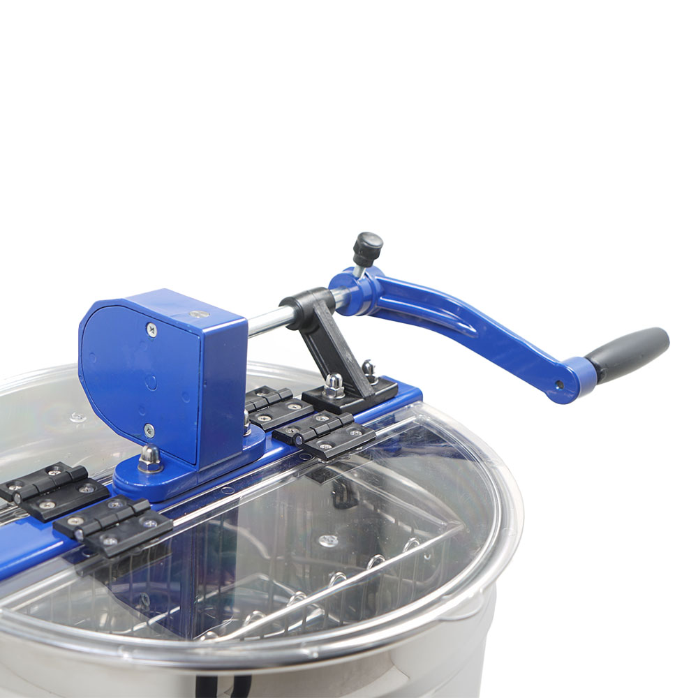 Kosz z oczkami o wymiarach 15×70 mm zapewnia odpowiednie podparcie dla plastrów, minimalizując ryzyko ich uszkodzenia podczas wirowania. Nierdzewny zawór umożliwia łatwe i higieniczne opróżnianie miodarki z miodu.