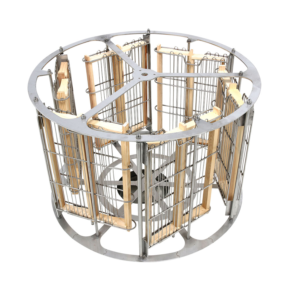 Konstrukcja wykonana została z kwasoodpornej stali nierdzewnej AISI 304 o grubości 0,8 mm, co zapewnia maksymalną trwałość, odporność na korozję i łatwość w utrzymaniu czystości. Średnica bębna 850 mm pozwala na jednoczesne wirowanie sześciu ramek, znacznie przyspieszając pracę.