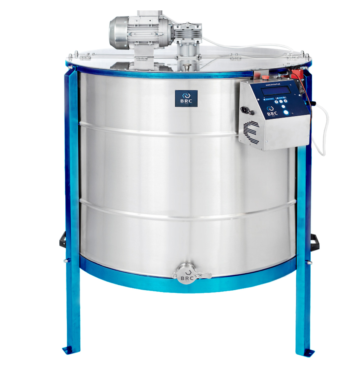 Miodarka BRCtech o średnicy 870 mm to wydajne i solidne urządzenie zaprojektowane z myślą o intensywnej pracy w średnich i dużych pasiekach. Wyposażona w nowoczesny napęd pasowy oraz silnik 0,37 kW, zapewnia cichą, stabilną i wygodną pracę nawet przy dużych obciążeniach.