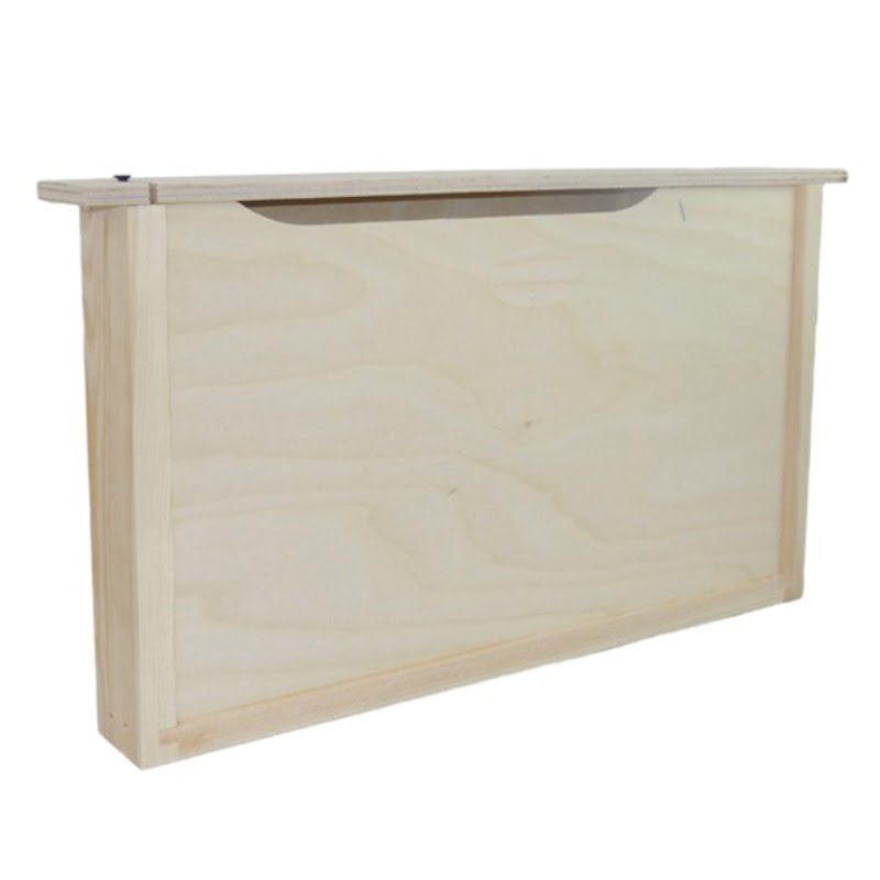 Drewniana podkarmiaczka ramkowa typu Dadant o pojemności 3,3 litra, idealna do skutecznego i bezpiecznego karmienia pszczół. W całości wykonana z drewna (sklejka) i uszczelniona klejem wodoodpornym, co zapewnia trwałość i odporność na wilgoć. Podkarmiaczka wyposażona jest w dwie komory, które zapobiegają wychodzeniu pszczół przez otwór wlewowy, oraz pływak chroniący pszczoły przed topieniem się w syropie. Górna część podkarmiaczki jest łatwa do demontażu, co znacząco ułatwia czyszczenie z pozostałości syropu lub dzikiej zabudowy.
