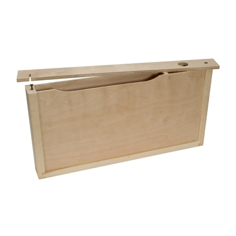 Drewniana podkarmiaczka ramkowa typu Langstroth o pojemności 2,5 litra, idealna do skutecznego i bezpiecznego karmienia pszczół. W całości wykonana z drewna (sklejka) i uszczelniona klejem wodoodpornym, co zapewnia trwałość i odporność na wilgoć. Podkarmiaczka wyposażona jest w dwie komory, które zapobiegają wychodzeniu pszczół przez otwór wlewowy, oraz pływak chroniący pszczoły przed topieniem się w syropie. Górna część podkarmiaczki jest łatwa do demontażu, co znacząco ułatwia czyszczenie z pozostałości syropu lub dzikiej zabudowy.