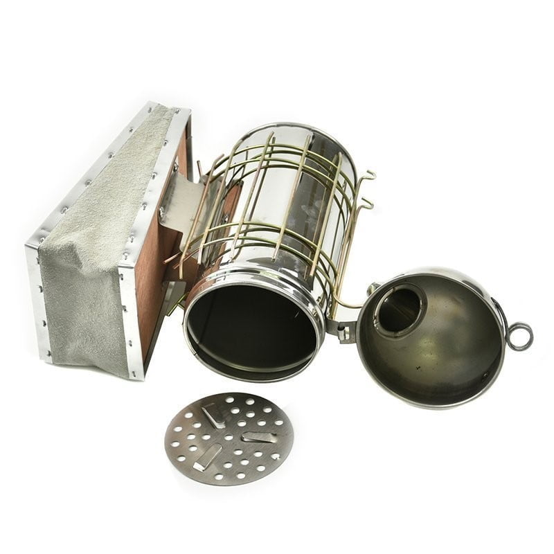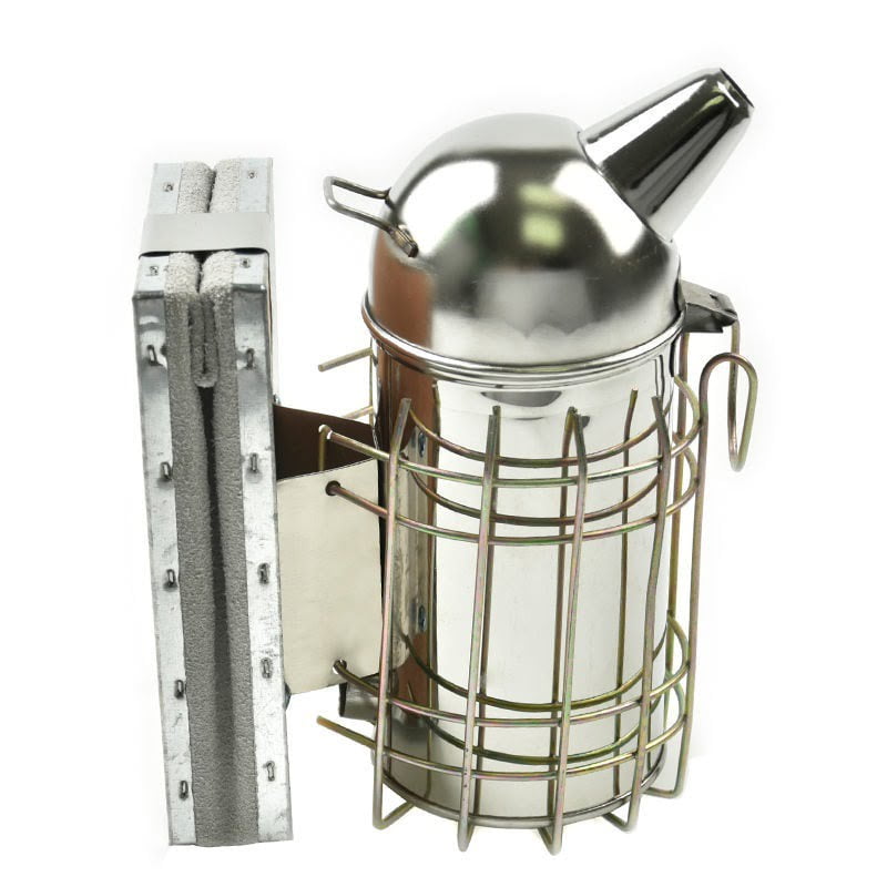 Podkurzacz pszczelarski wykonany z wytrzymałej stali nierdzewnej, zapewniający trwałość i efektywność pracy w pasiece. Jego solidna konstrukcja i praktyczne funkcje zapewniają wygodę i bezpieczeństwo użytkowania.