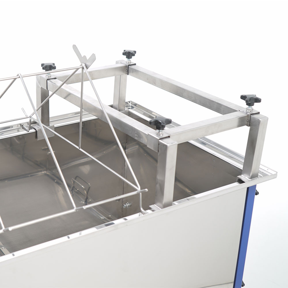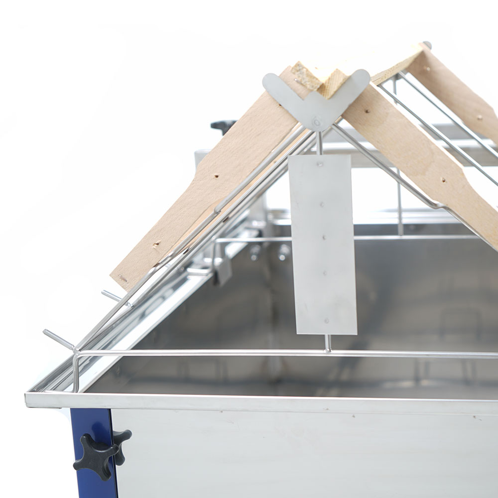 Długość 1000 mm pozwala na komfortową pracę przy odsklepianiu plastrów miodu, a konstrukcja stołu została zaprojektowana z myślą o wygodzie użytkownika. Model wyposażono w stabilne, malowane na niebiesko nogi, które gwarantują odpowiednią wytrzymałość i estetykę.