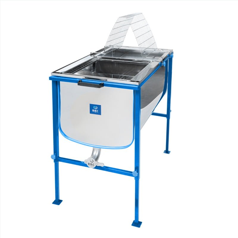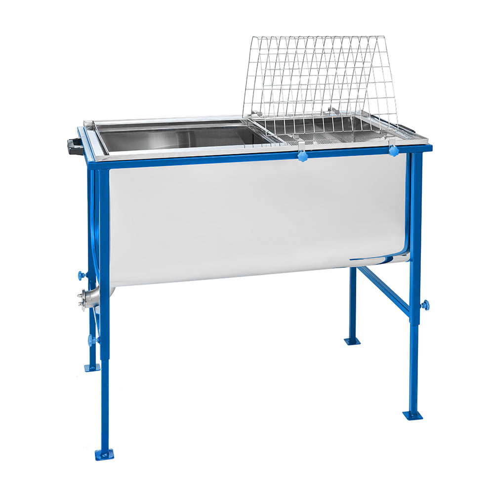 Korzyści: Dłuższy, 1500-milimetrowy stół do odsklepiania BRCtech to rozwiązanie idealne dla większych pasiek, gdzie liczy się efektywność i szybkość pracy. Obustronne stanowisko umożliwia pracę dwóch osób jednocześnie, a uniwersalność stołu sprawia, że nadaje się on do każdego rodzaju ramek. Dodatkowe funkcje, takie jak regulowane nogi, zaokrąglone dno oraz wygodny spust, zapewniają komfort i higienę pracy, czyniąc go niezwykle praktycznym narzędziem w nowoczesnej pasiece.