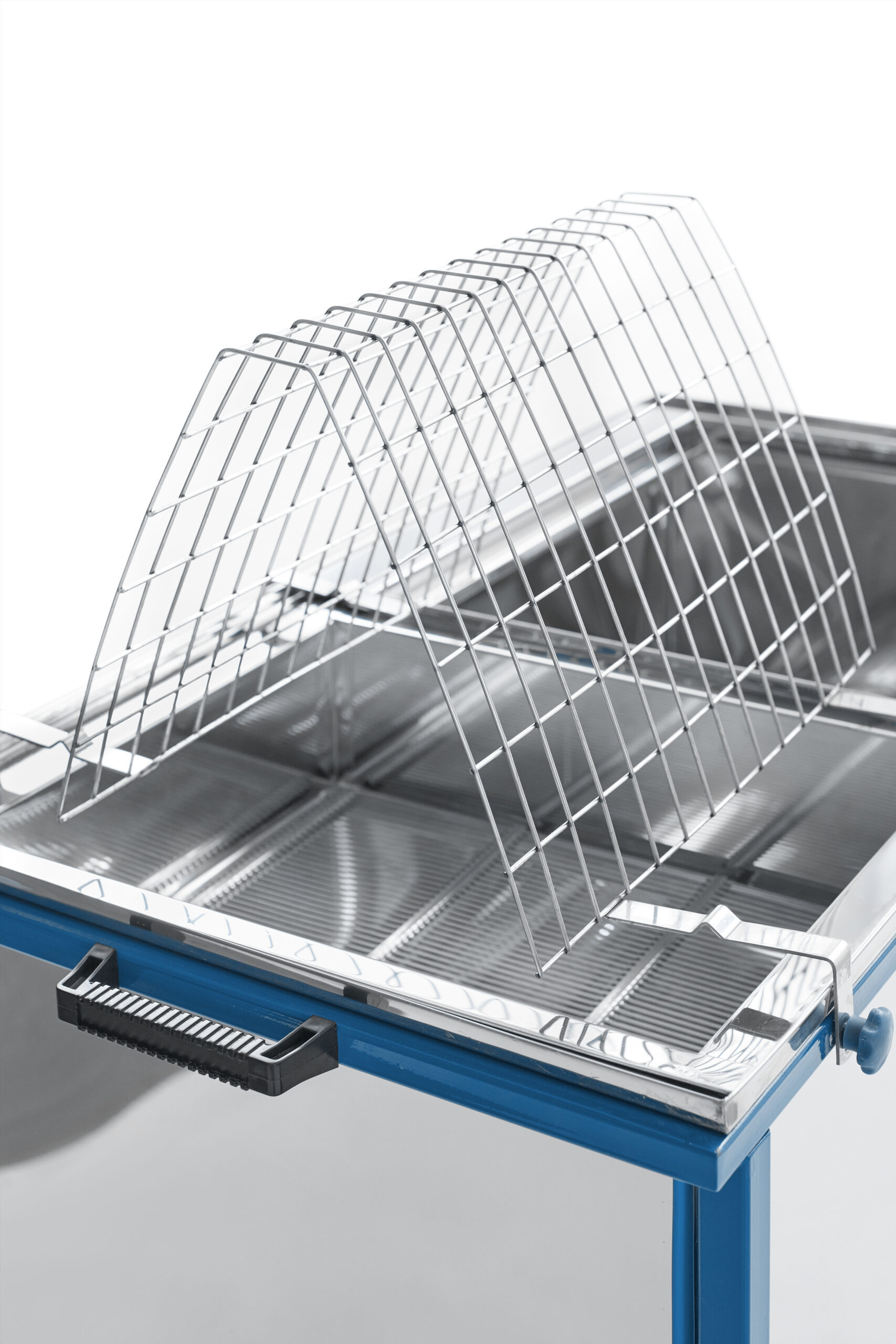 - Stojak na ramki: Wytrzymały stojak z drutu nierdzewnego umożliwia przechowywanie ramek, zapewniając łatwy dostęp i porządek podczas pracy.