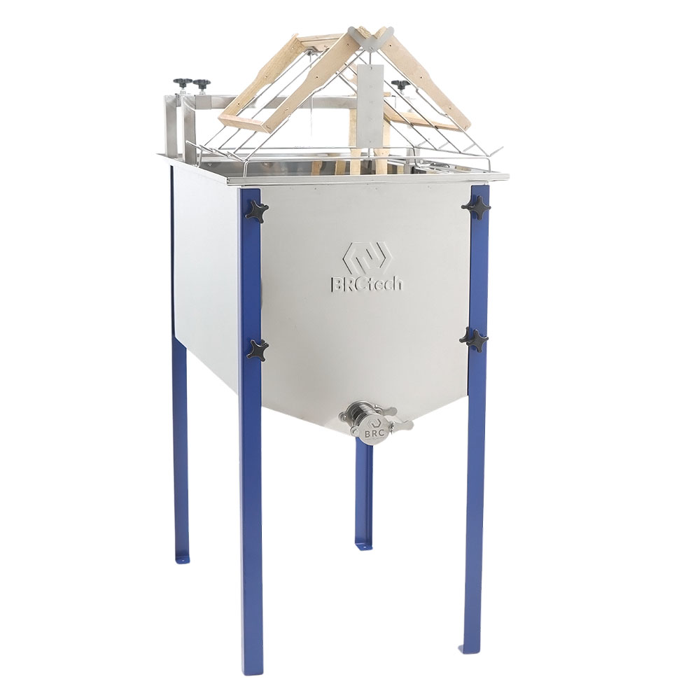 Stół posiada stalowe gęste sito, które skutecznie zatrzymuje odsklepiny, umożliwiając jednocześnie szybkie odprowadzanie czystego miodu. Dodatkowo stożkowe dno zapewnia sprawne spływanie miodu w kierunku nierdzewnego zaworu.