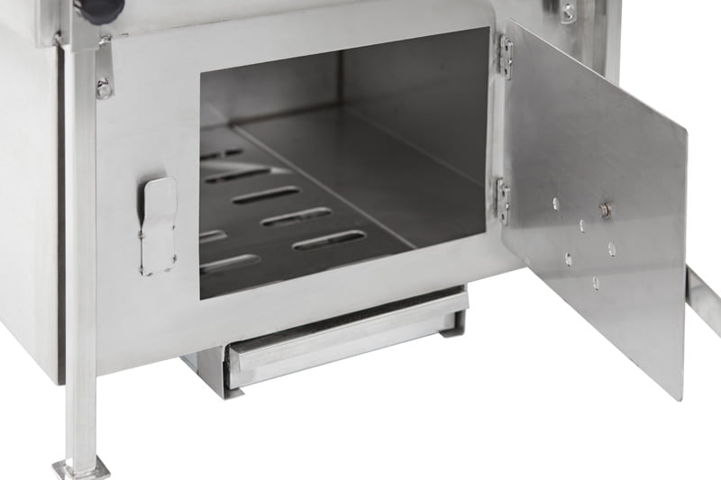 - Konstrukcja ze stali nierdzewnej: Całość wykonana z grubej stali nierdzewnej gwarantuje trwałość i odporność na korozję.
