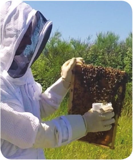 - Zbierz pszczoły: Należy zebrać około 250 pszczół do sitka znajdującego się w pojemniku.
