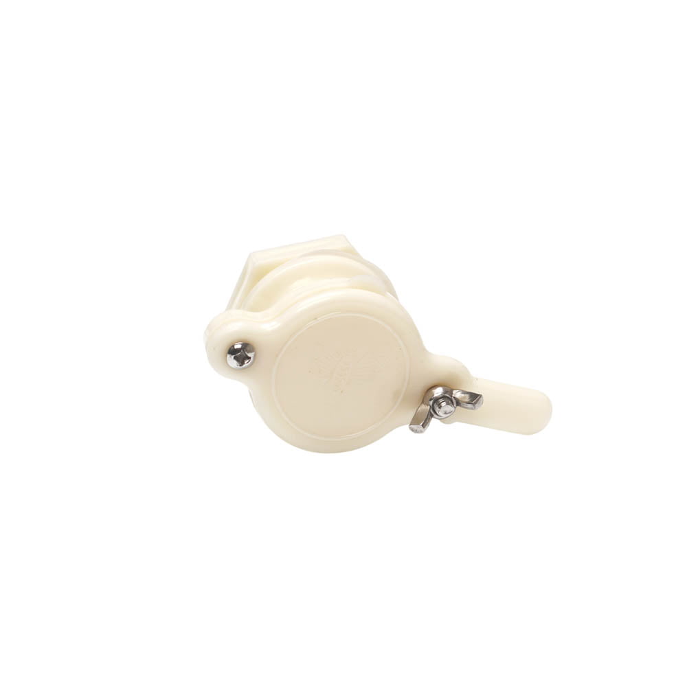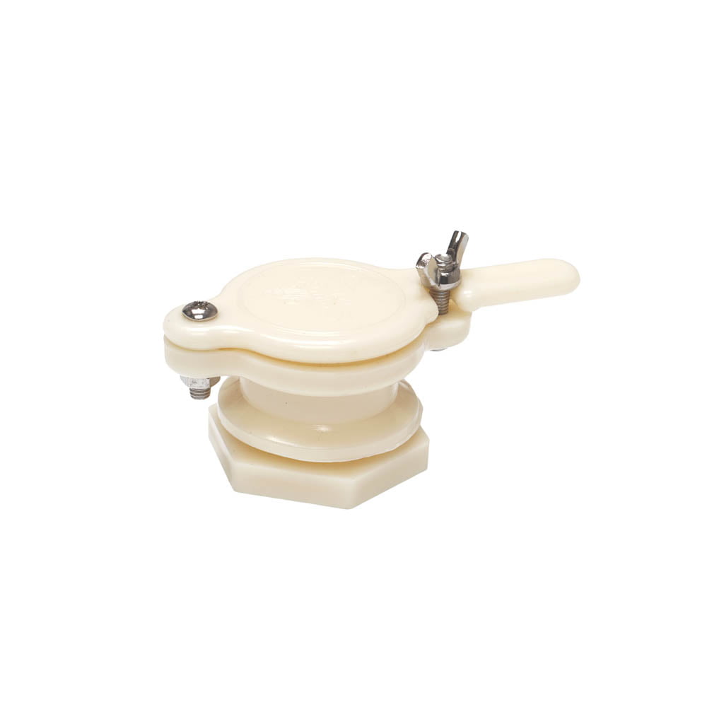 Zawór wykonany z tworzywa sztucznego. Uszczelniony gumą. Średnica ok. 4,5 cm.