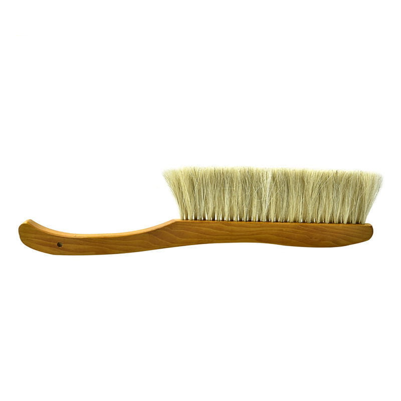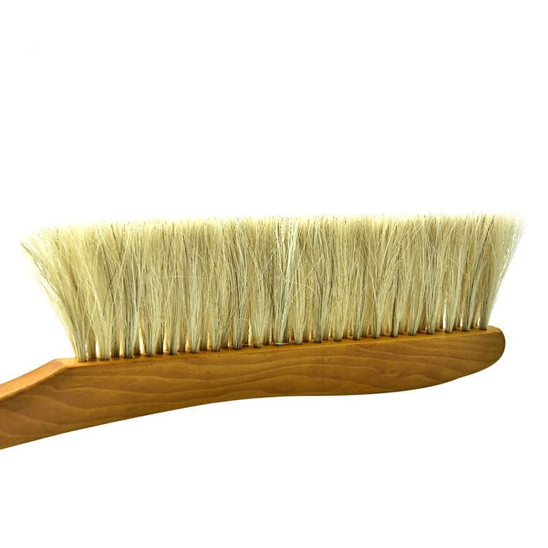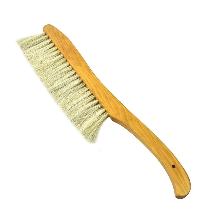 Zmiotka pszczelarska wykonana z naturalnych materiałów, idealna do delikatnego omiatania pszczół z ramek. Trzyrzędowy rozstaw miękkiego i sztywnego włosia końskiego zapewnia zarówno delikatność, jak i skuteczność pracy.